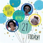 Bright Graphic Birthday Ballons Hip Hip Hooray Nephew 21 Today Multiple Photo Upload Card