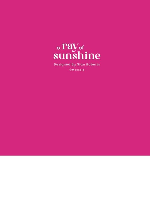 The rear of the card has a pink background with the Ray Of Sunshine and Moonpig logos