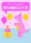 Bright Illustrated Dinosaur Birthday Presents And Balloons Granddaughter Birthday Card