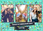 Bright Teal And Confetti Multi-Photo And Personalised Text Card