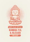 A peaceful and uplifting Vesak greeting card featuring a serene Buddha illustration with a warm message of blessings. The design includes playful typography with the pun "Buddha-ful & Blessed," making it a heartfelt and unique way to share joy on this special occasion. The card allows for personalisation with a name.