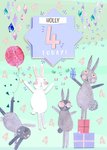 Bunnies, Confetti And Gifts Personalised Happy 4th Birthday Card