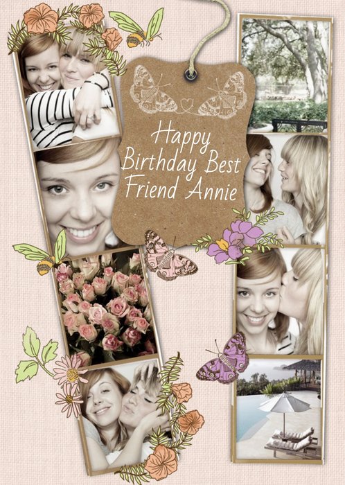 Butterflies Personalised Photo Strip Happy Birthday Card For Best Friend