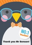 Cartoon Penguin With Glasses Personalised Thank You Teacher Card