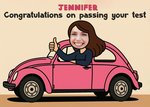 "Jennifer congratulations on passing your test".
