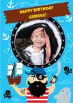 Cartoon Pirates Happy Birthday Photo Card