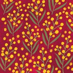 Illustrated of yellow flowers and leaves of the wattle plant on red background.