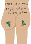 Featuring an illustration of a bum with a sprig of holly on each cheek.