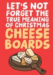 Text reads: "Let's not forget the true meaning of Christmas cheese boards."