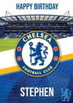 Featuring the Chelsea FC badge with a photography of Chelsea football grounds.