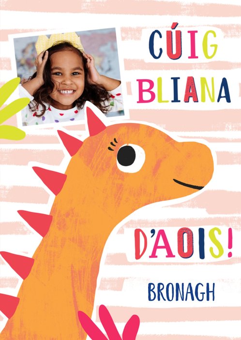 Text reads: "Cúig Bliana D'aois". Five Years Old Birthday Card.