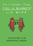 "Christmas time pigs in blankets* and wine *mistletoe is so overrated, Aiden!". 'Mistletoe is so overrated, Aiden!' can be personalised!