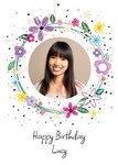Circular Floral Design Photo Upload Happy Birthday Card