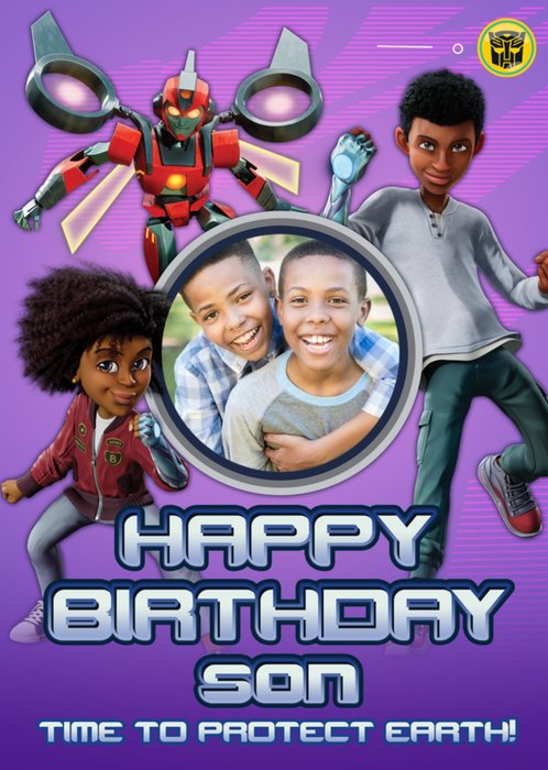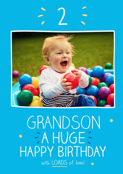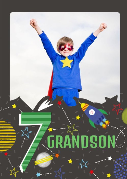 Circular Photo Frame Surrounded By Colourful Stars Son's Photo Upload Seventh Birthday Card