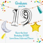 "Graham you're 19. Have the best birthday EVER! Love from Julie and Tom xx".