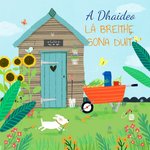 Front of card: Illustration of a gardening shed with wheelbarrow, tools, sunflowers and plants outside The text reads: "A Dhaideo Lá breithe sona duit" With editable text options