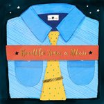 Front of card: Illustration of a blue shirt with yellow polkadot tie and tie pin. Orange banner across front with text The text reads: "Breithlá Sona, a Athair"