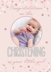 Colourful Confetti Surrounds Circular Photo Upload Baby Girl Christening Card
