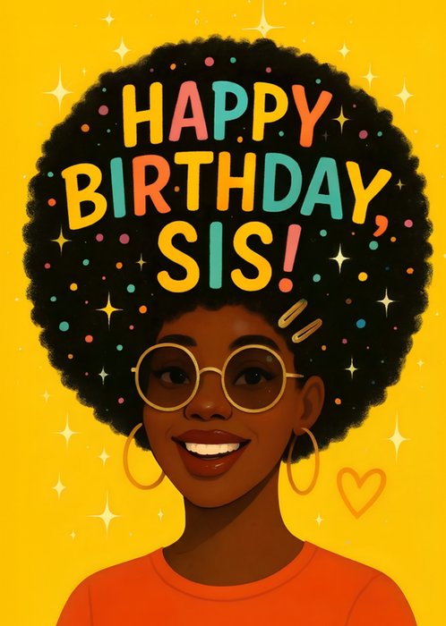 Colourful Lady With Afro Illustrated Happy Birthday Sis Card