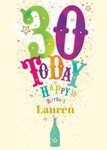 Colourful Lettering 30 Today Personalised Birthday Card