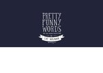 The rear of the card has a navy blue background with the Pretty Funny Words and Moonpig logos