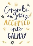 "Congrats on getting accepted into Galway." "Galway" is editable.