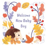 Cute Autumnal Illustrated Hedgehog Woodland Foliage New Baby Card