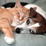 Cute Cat And Dog Love Cuddling Card