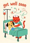 Cute Cat Nurse With Dog In Hospital Bed Get Well Soon Card