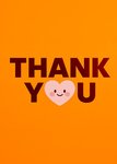 Featuring a blocky 'Thank You' message with a cute heart illustration replacing the 'o' of 'you'. The design sits on a vibrant orange background.