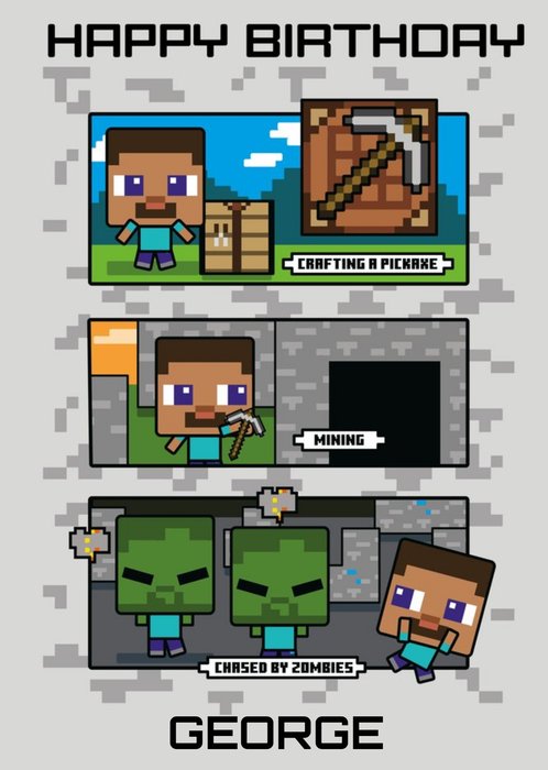Cute Illustrated Minecraft Birthday Card.