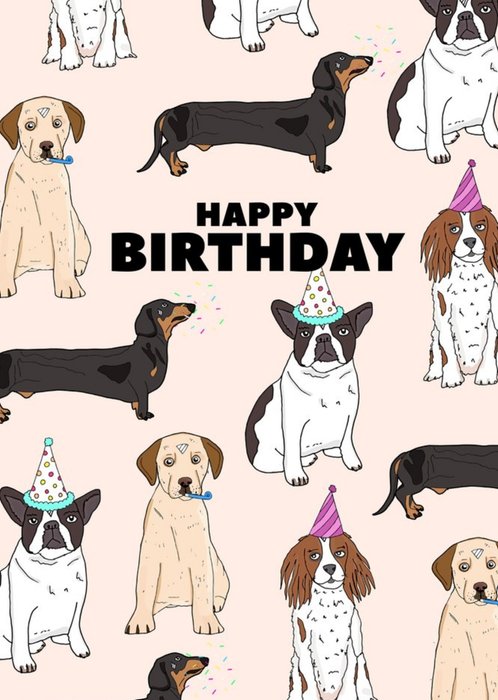 Cute Illustration Dogs Happy Birthday Card