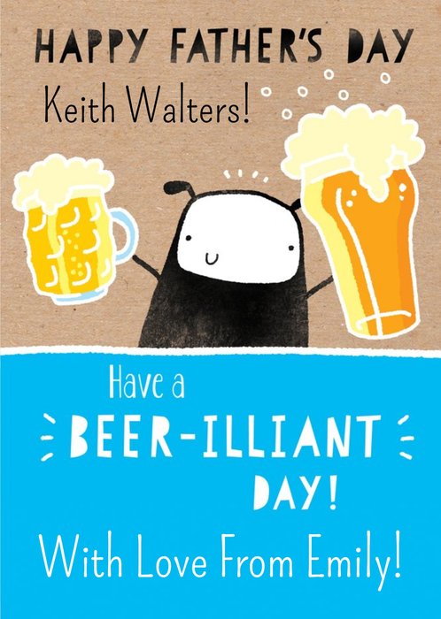 Cute Illustration of a Sheep Holding Beers Beer Illiant Day Personalised Fathers Day Card