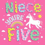 Cute Illustration Unicorn Niece You're Five Birthday Card