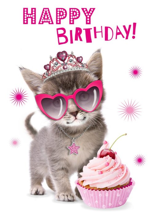 Cute Princess Kitten With A Cupcake Birthday Card