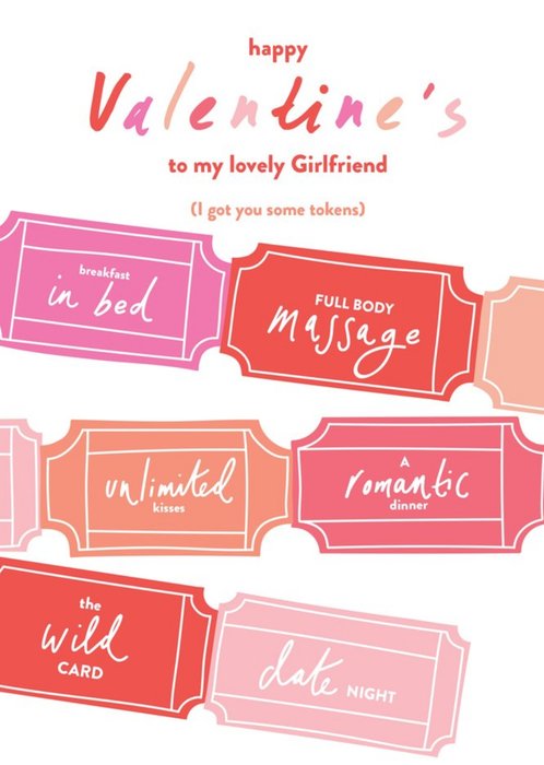 Cute Special Tokens For My Girlfriend Valentine's Pink Card