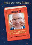 The text reads: Wishing You A Happy Birthday Life According tol "Grandpa Joe" Wishing You A Birthday Full Of Love And Adventures with Grandpa Joe being editable