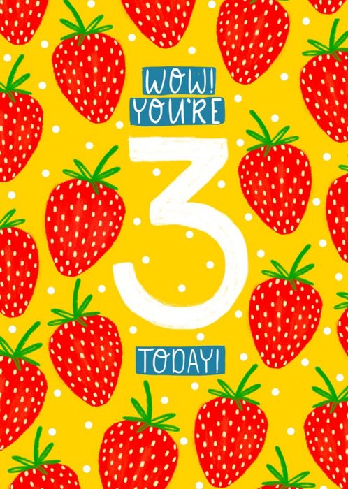 Cute Strawberries Wow You're 3 Birthday Card
