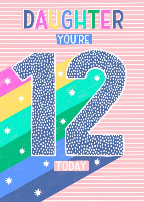 Cute Typographic Daughter You're 12 Today Birthday Card