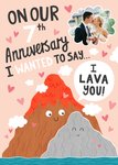 Cute Volcano 7th Year Anniversary Photo Upload Card