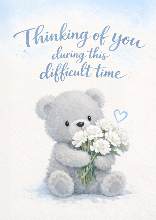 Cute Watercolour Teddy Bear With Bouquet Sympathy Card