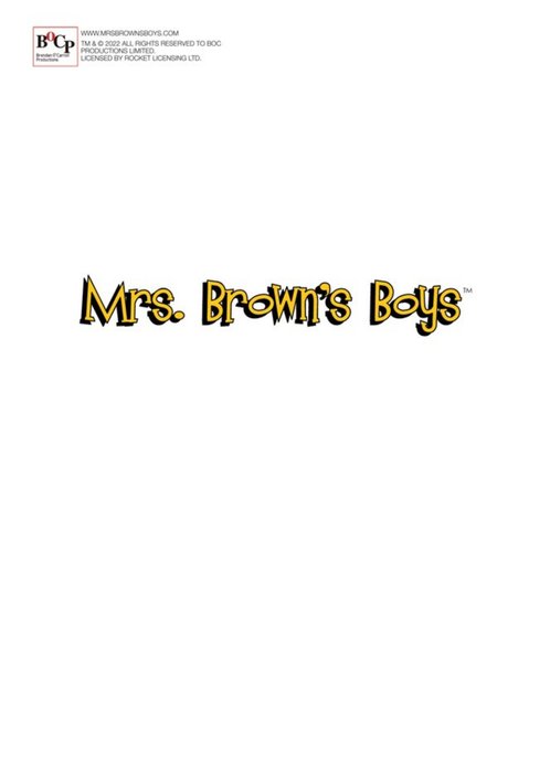 The rear of the card has white background with the Mrs Brown's Boys and Moonpig logos