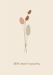 Minimalist design featuring three delicate illustrated stems tied together with a bow on a soft cream background.