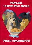 Disney Lady & The Tramp Love You More Than Spaghetti Valentines Card