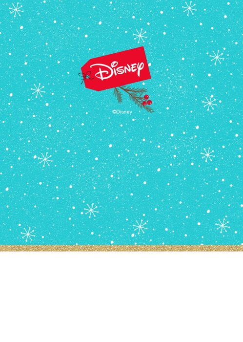 Featuring an illustration of Pluto, Mickey Mouse and Minnie Mouse writing thank you cards, in front of a photo upload area that is surrounded by Mickey themed Christmas decorations, presents and editable text.