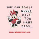 Disney Minnie Mouse Never Have Too Many Bags Birthday Card