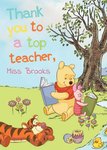 Disney Winnie The Pooh Thank You Top Teacher Personalised Card