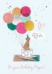 Dog And Colourful Balloons Illustrated Birthday Card