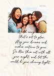 An elegant birthday card featuring a heartfelt poem written in a handwriting style, with a large photo upload area above it. The card has a white background with a textured paper effect.