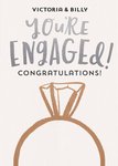 Text reads: Victoria & Billy. You’re engaged! Congratulations."br>With customisable names.